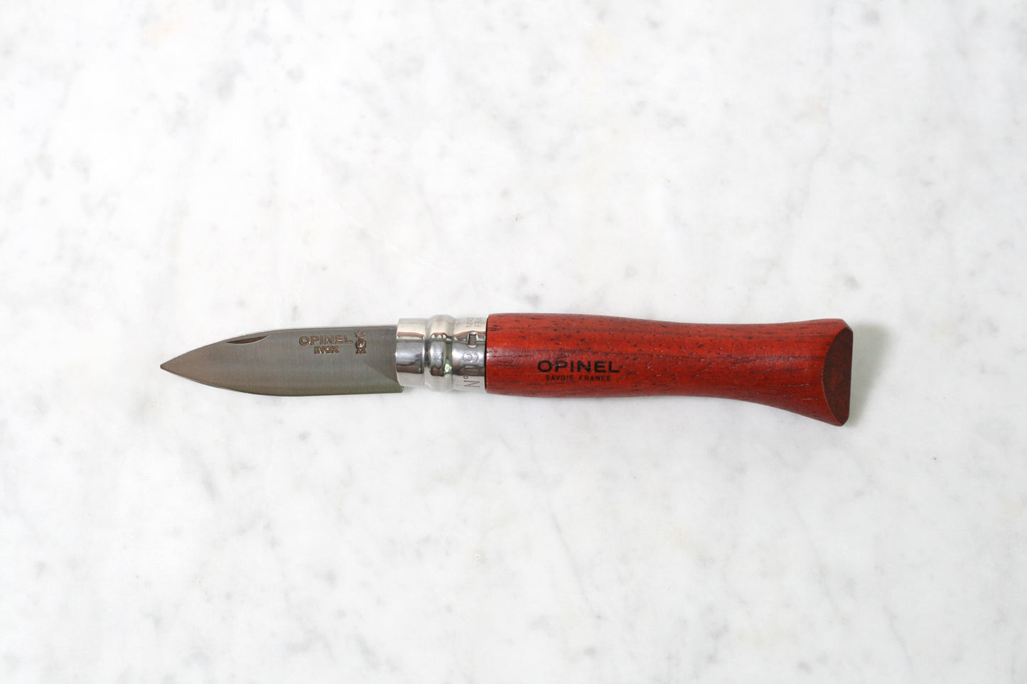 The classic Opinel folding knife, made with a blunted blade designed to easily open oysters. Still made in the Savoie, France.