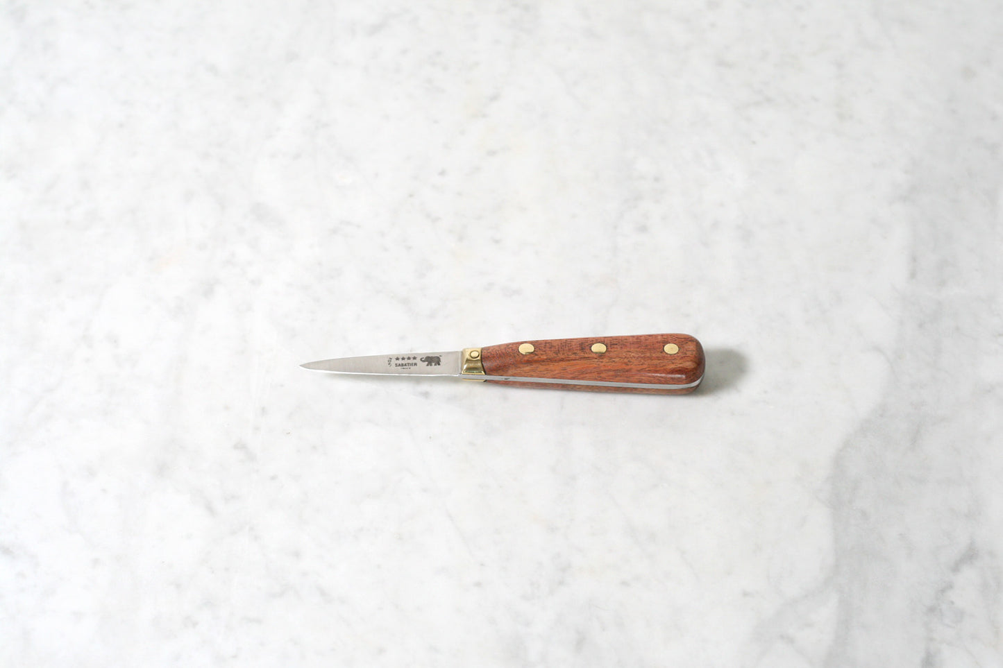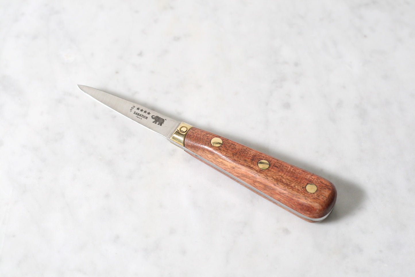A French style oyster knife, crafted in Thiers, the historic center of French blade making by Thiers Issard, a company with over 125 years of blade making experience. The rounded handle fits well in the hand.