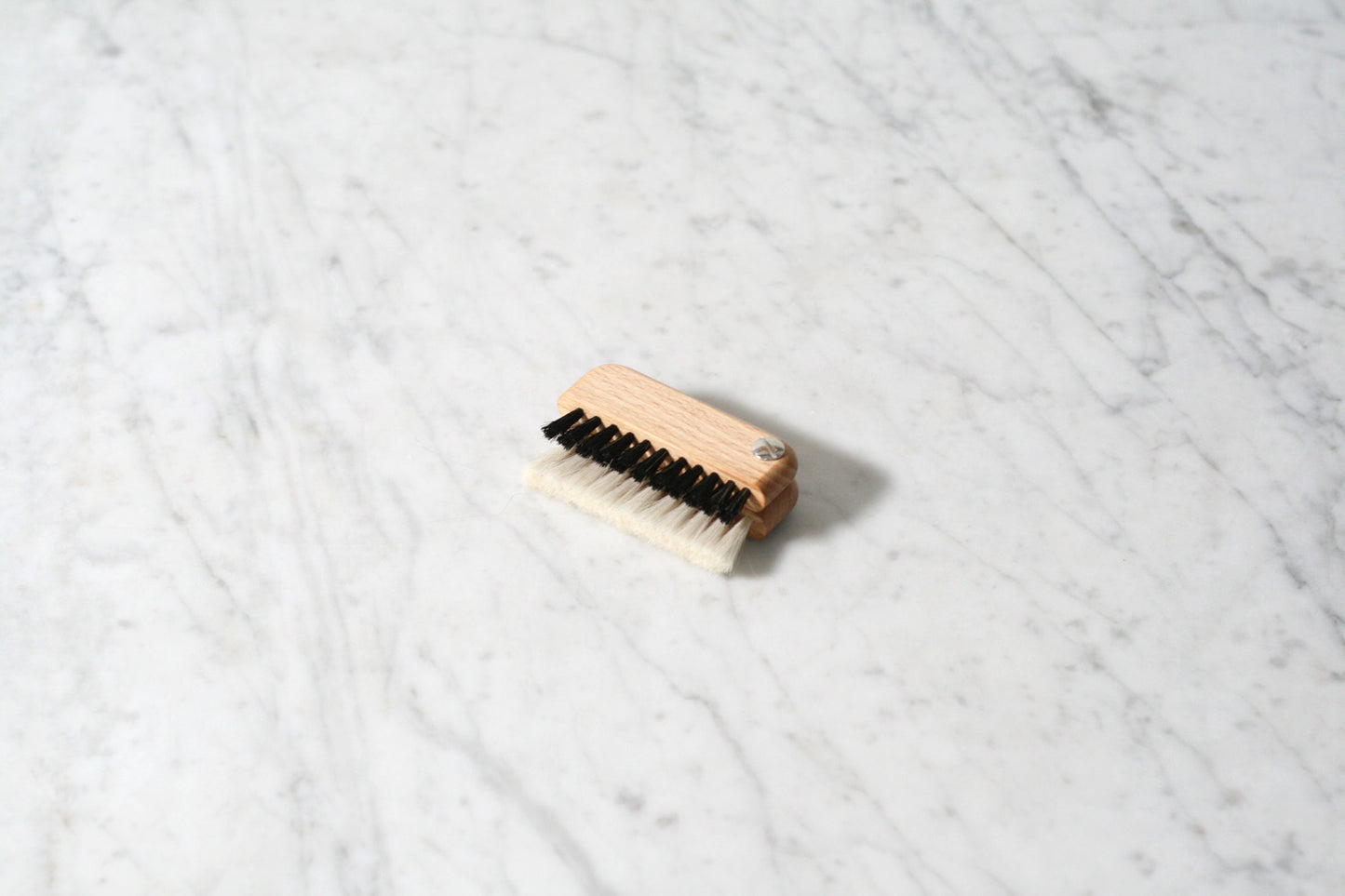 This hinged, double brush is compact but mighty. The dark, strong row of bristles easily reaches in between the keys of your keyboard while the monitor the gentle white bristles easily clear dust from the screen.