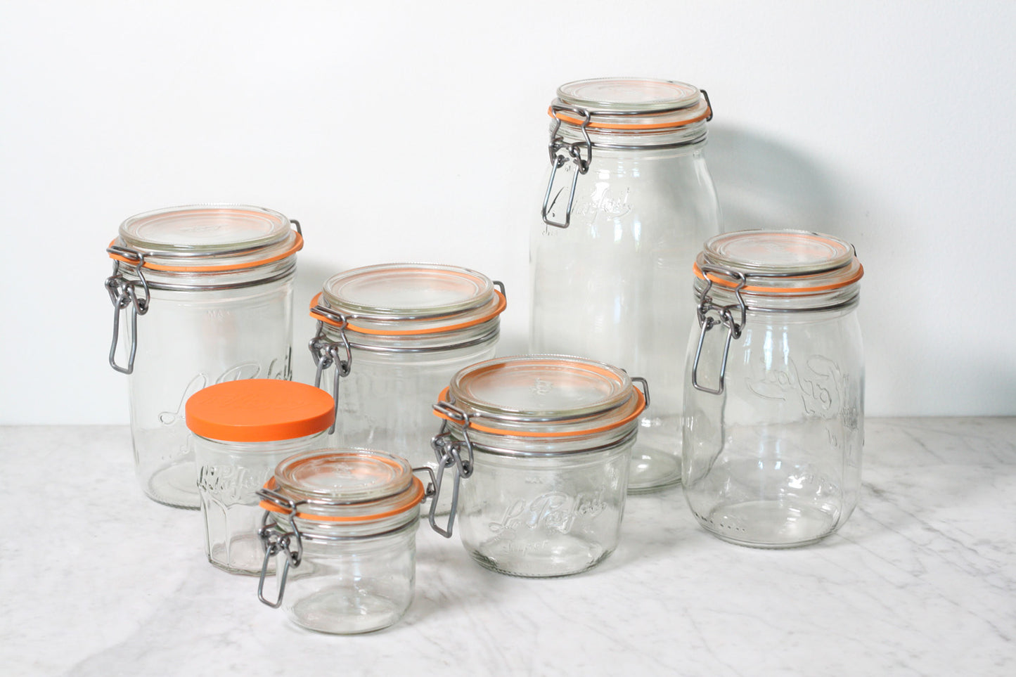 Le Parfait has been a household name in France since it's founding in the 1930. Today the jars are still made in France and carry the distinctive 'Le Parfait' script logo and orange rubber seal.