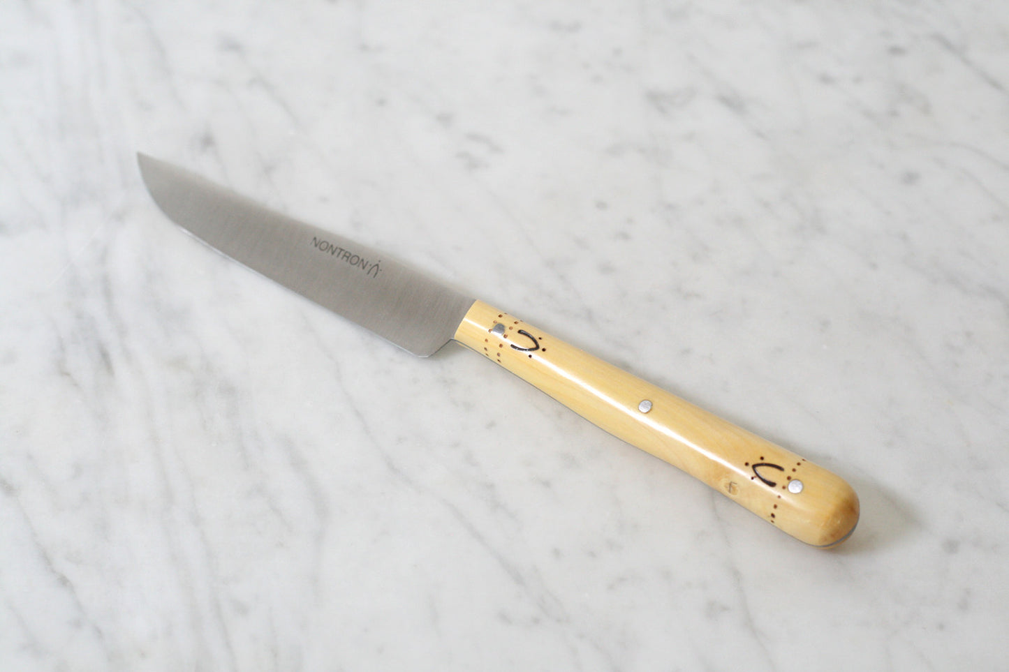 Coutellerie Nontronnaise knives are instantly recognizable by the distinctive boxwood handle with burned pattern.