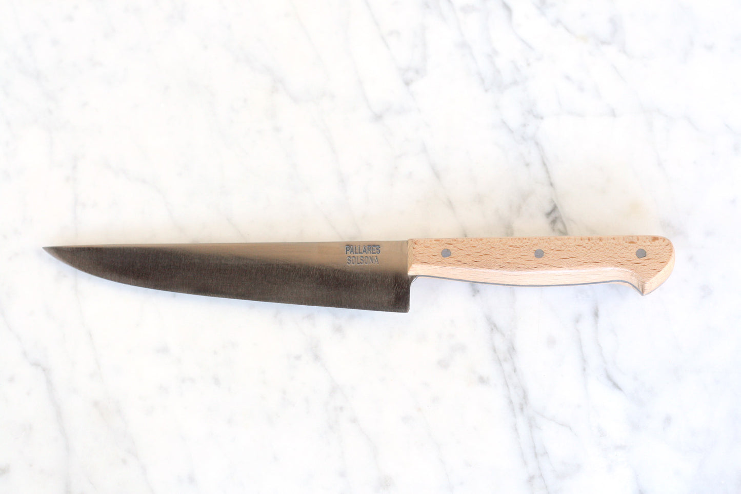 These carbon steel and beechwood kitchen knives are made by hand in a workshop in Solsona, Spain, near Barcelona, where the Pallarès family has been making knives and blades since 1917.