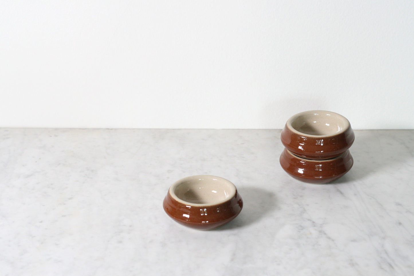 Set the table with French individual butter dishes, or use them as sturdy little spice or salt bowls next to the stove. Made of Loire Valley grey clay and glazed in a classic two tone brown.
