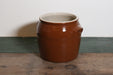 A vintage French crock crafted of Loire Valley grey clay and glazed a classic brown glaze. Made by hand. Stamped '4 Made in France' on the bottom to indicate the size. A beautiful display for a generous quantity of utensils, etc.