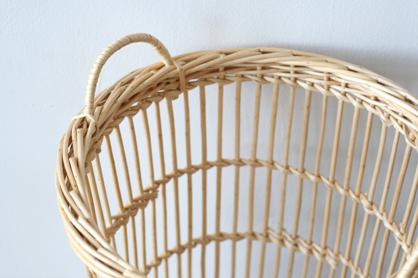 A handwoven wicker waste basket from Fayl-Billot, France, a town with over three centuries of basket weaving history. The style of this simple waste basket brings to mind boulangeries full of baguettes all over France.