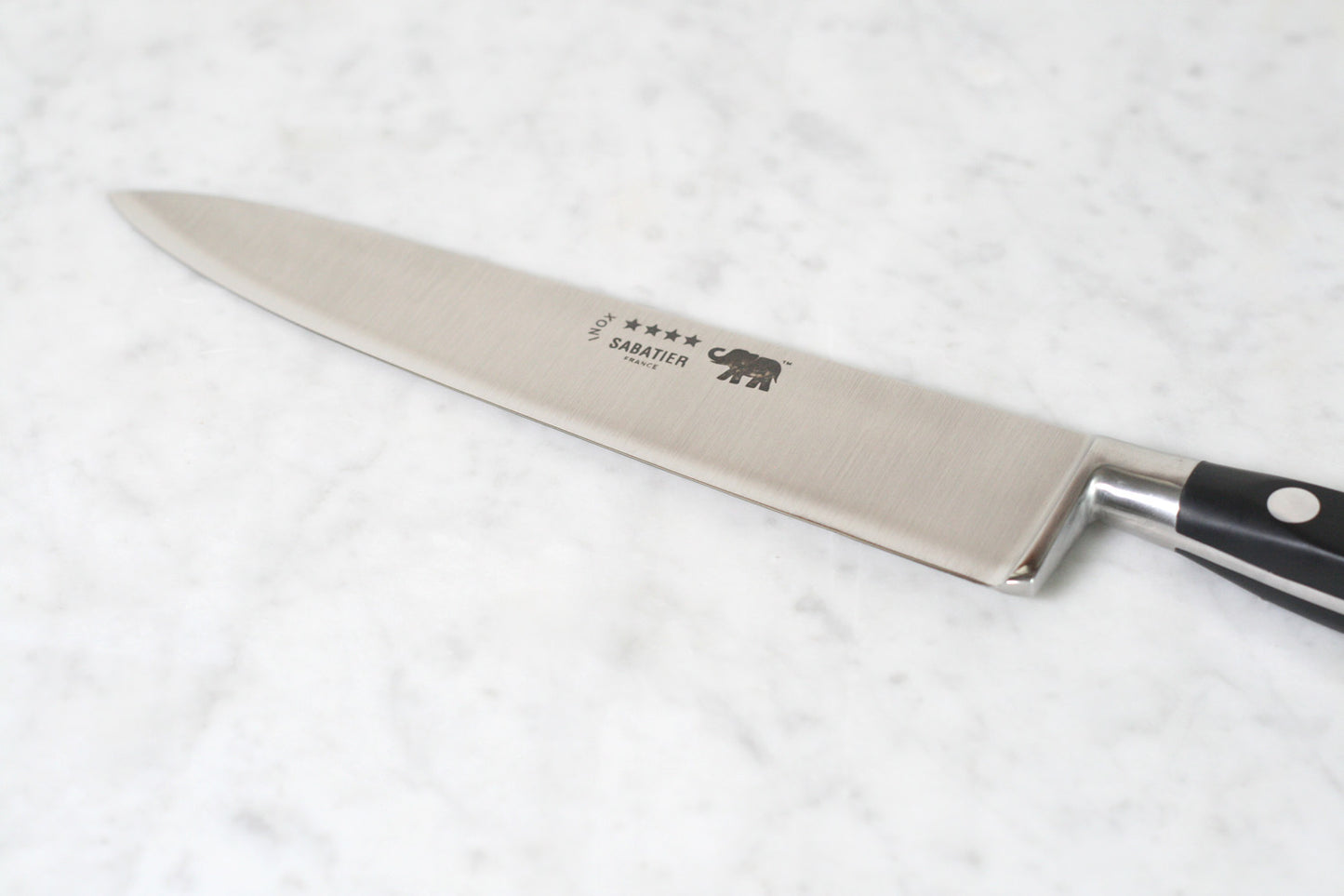 A classic stainless steel French chef's knife crafted in Thiers, the historic center of French blade making, by our favorite cutlery company, Thiers Issard. The Sabatier name originated in Thiers at the beginning of the 19th century, and signifies fully forged construction and high quality craftsmanship. Though the Sabatier name can now be found on a wide range of knives, this knife is a true example of Sabatier quality.